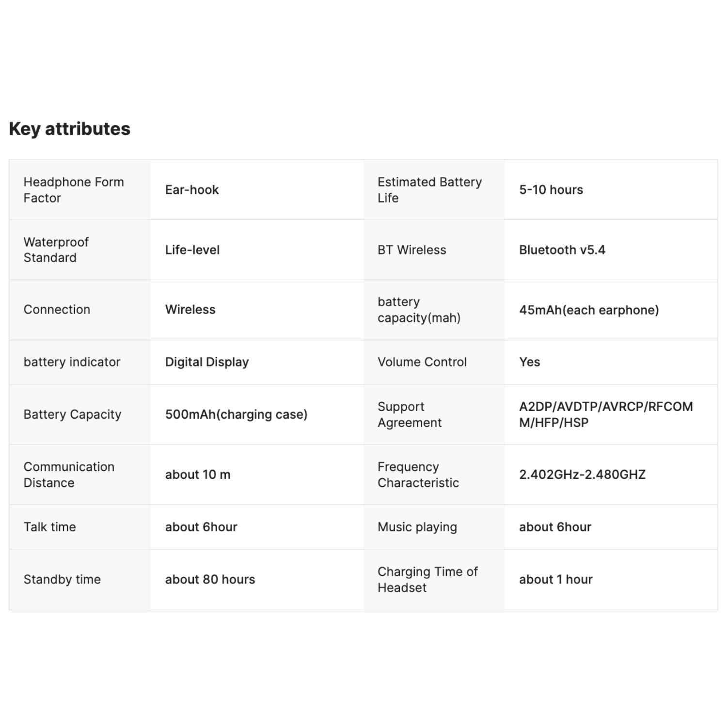 Secure ear‑hooks. Open‑fit comfort. Bluetooth 5.4, up to 6‑hour playtime, and a 500 mAh case that goes where you do.