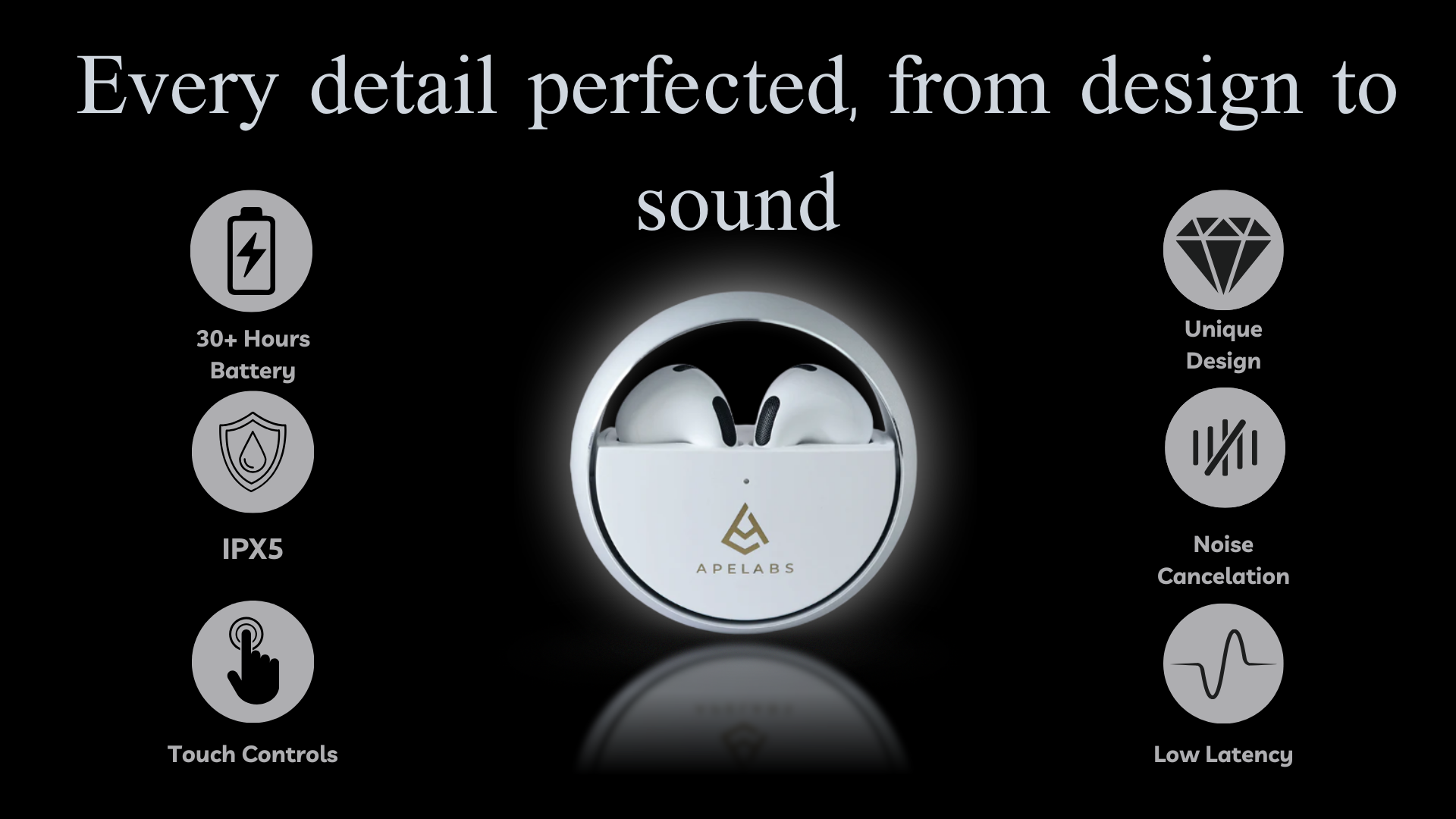- Touch & Hold for 5 Seconds: Power the earbuds ON/OFF.