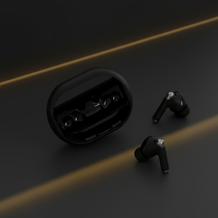 12 mm dynamic drivers, Adaptive ANC, Transparency, and Bluetooth 5.2 — in a compact Onyx case with a clean single‑LED.